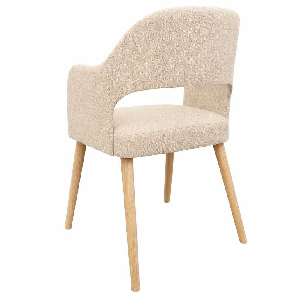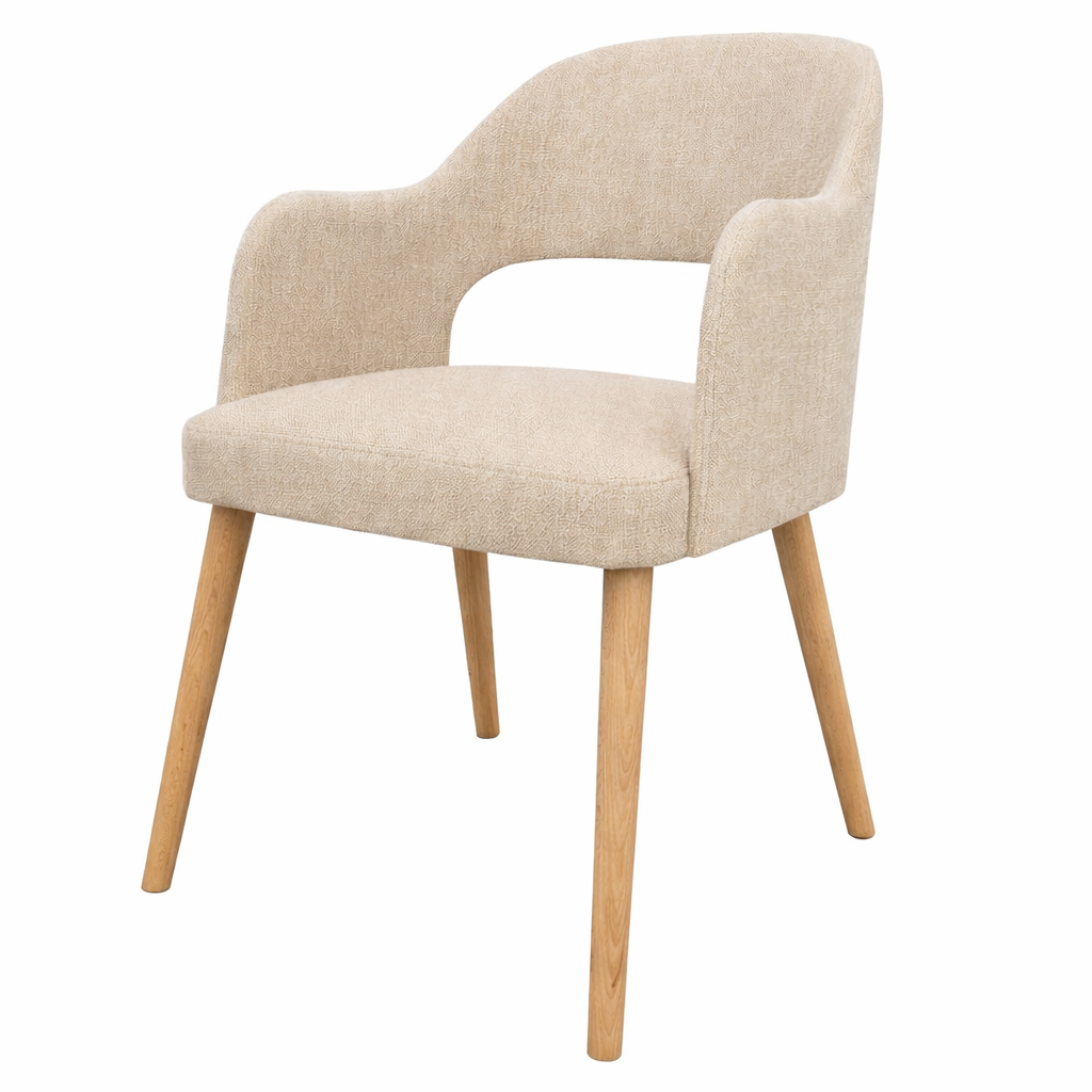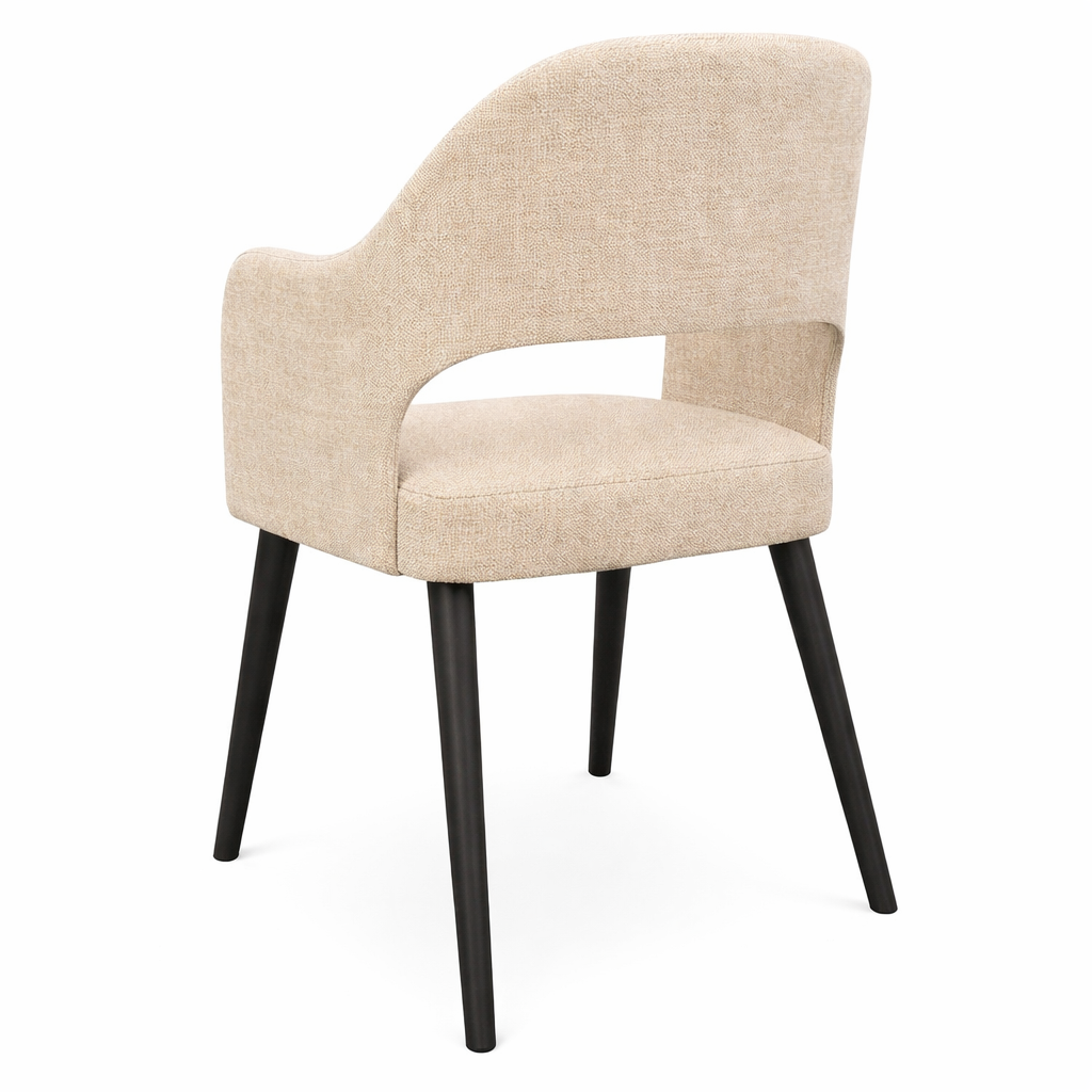 Krzesło Orta to elegancki model tapicerowany, który łączy nowoczesną formę z wyjątkowym komfortem użytkowania. Charakterystyczne, delikatnie wyprofilowane oparcie z podłokietnikami oraz miękkie, wygodne siedzisko tworzą spójną i ponadczasową całość.