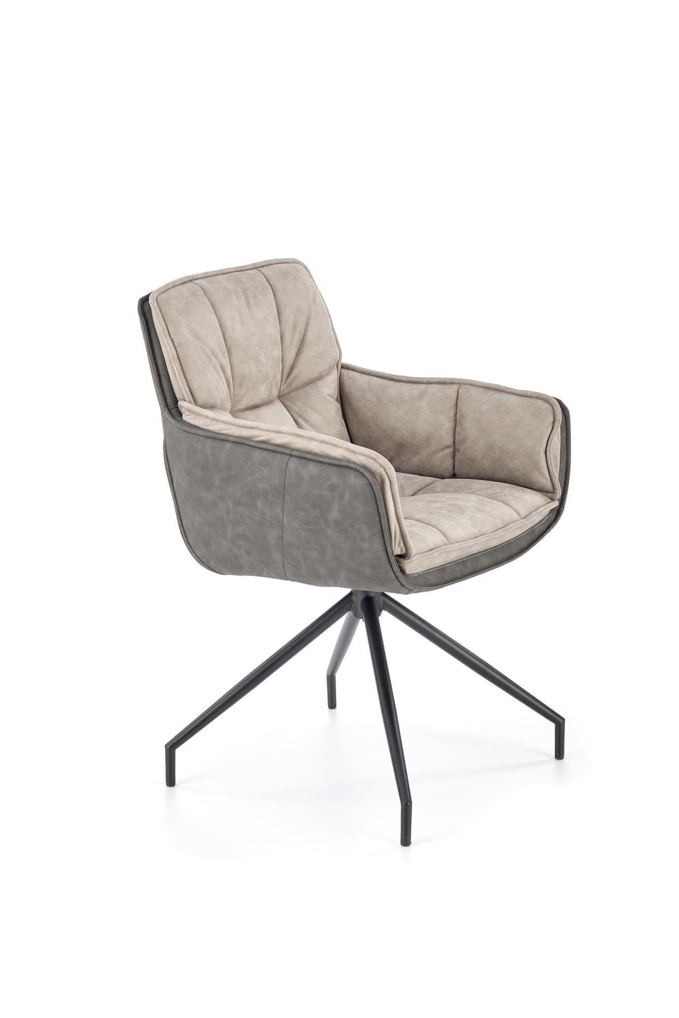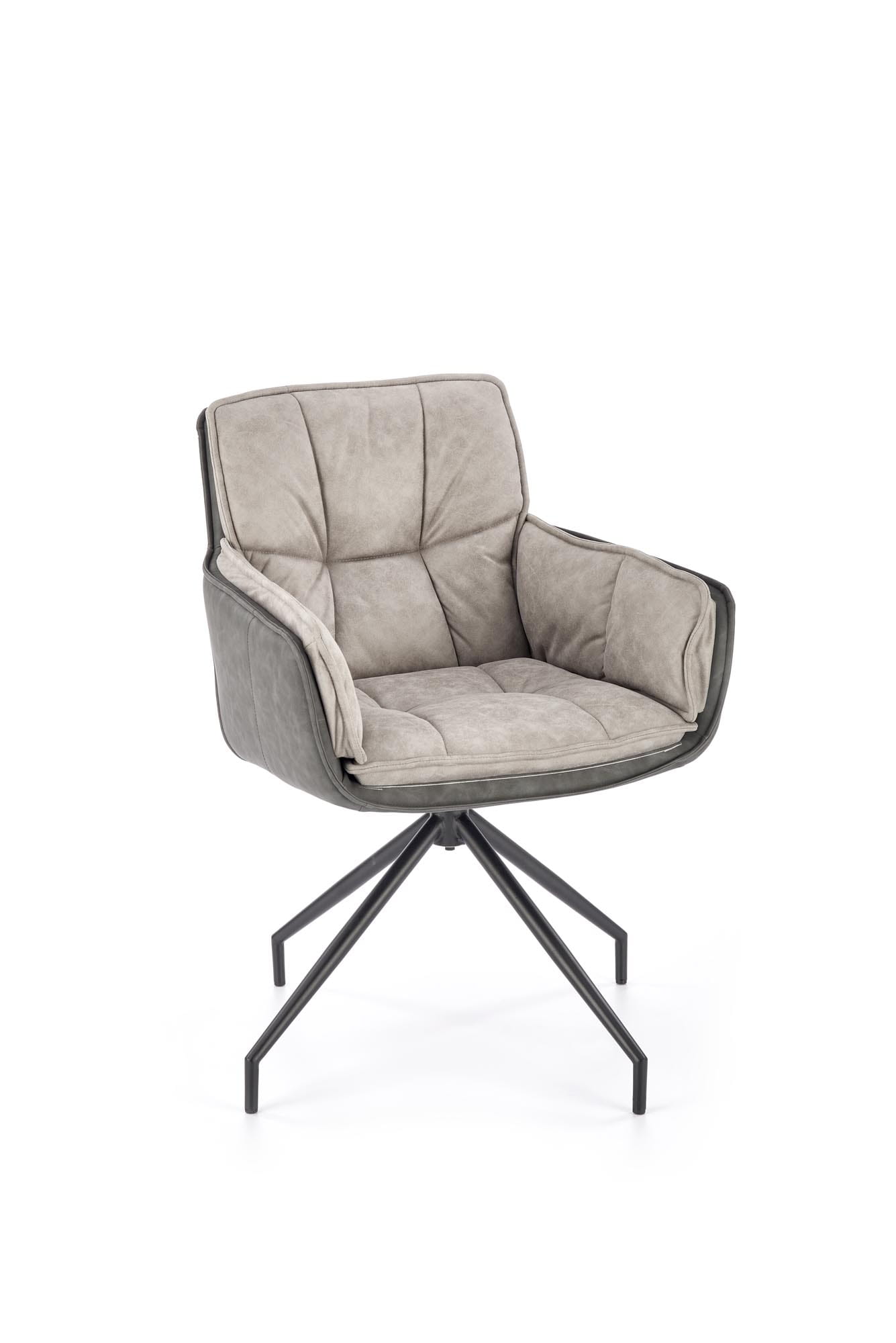 Materiał: stal malowana proszkowo kolor czarny, eko skóra, tkanina kolor popielaty
